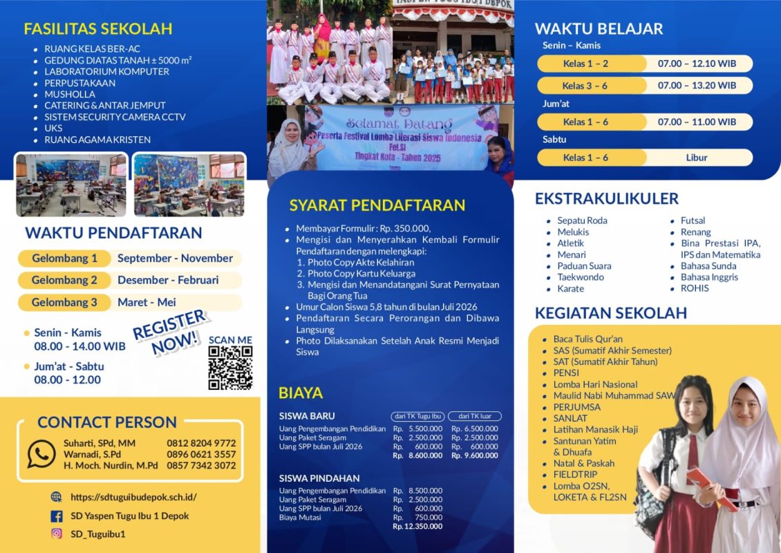 PENDAFTARAN CALON SISWA KELAS 1 SD YASPEN TUGU IBU 1 DEPOK TA. 2026/2027